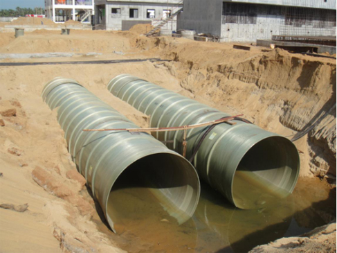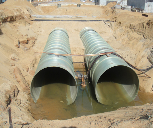 直径: DN1600-DN4000 压力等级: 0.6MPa、1.0MPa、1.6MPa、2.5MPa 刚度等级: SN5000、SN7500、SN10000 执行标准: 中国标准 GB/T21238-2015 玻璃纤维增强塑料夹砂管(参照执行) ASTM 标准 ASTM D3262 Gravity Sewer ASTM D3517 Gravity Sewer ASTM D3754 Gravity Sewer AWWA标准 AWWA C950 Fiberglass pressure Pipe AWWA M-45 Fiberglass Pipe Design Manual 应用领域: 石油、化工领域的污水排放 火电、核电行业的循环水管道 长距离引水的海水淡化 农田水利和市政工程等领域。 斯里兰卡普特拉姆电厂DN2700玻璃钢加筋管
